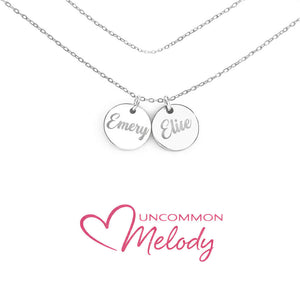 Gift this beautiful engraved disc necklace to the amazing Mom in your life or add it to your very own stack. Back side of disc may also be engraved with a custom message, Initials, numbers, dates, names…the possibilities are endless. Price includes single side engraving.