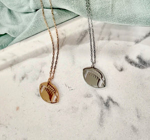 Gift this beautiful engraved football necklace to the amazing Mom or friend in your life or add it to your very own stack. Back side of bar may also be engraved with a custom message, Initials, numbers, dates, names…the possibilities are endless. Price includes single side engraving.
