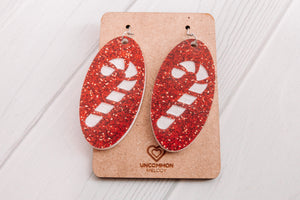 Add a bold touch of holiday sparkle with these Glitter Candy Cane Acrylic Earrings! Featuring a festive candy cane engraving on a red glittery backdrop, these eye-catching earrings are made from lightweight acrylic for comfortable all-day wear. The stainless steel hooks ensure they are hypoallergenic and perfect for sensitive ears. These earrings are great for holiday parties, festive gatherings, or simply adding a pop of seasonal cheer to your everyday outfits. Celebrate the season in style with these dazzling and fun holiday accessories!