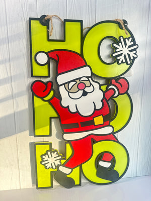 Santa ‘Ho Ho Ho’ Holiday Hanging Sign – Christmas Wall Décor