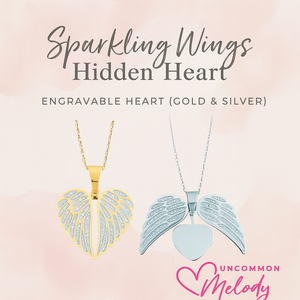 Let your story unfold with our Sparkling Wings Hidden Heart Necklace — a timeless piece designed to hold meaning close to your heart. The delicate angel wings part to reveal a polished heart charm, perfect for a custom engraving. Whether it’s a name, date, number, or initials, this necklace is a beautiful reminder of who or what matters most.
