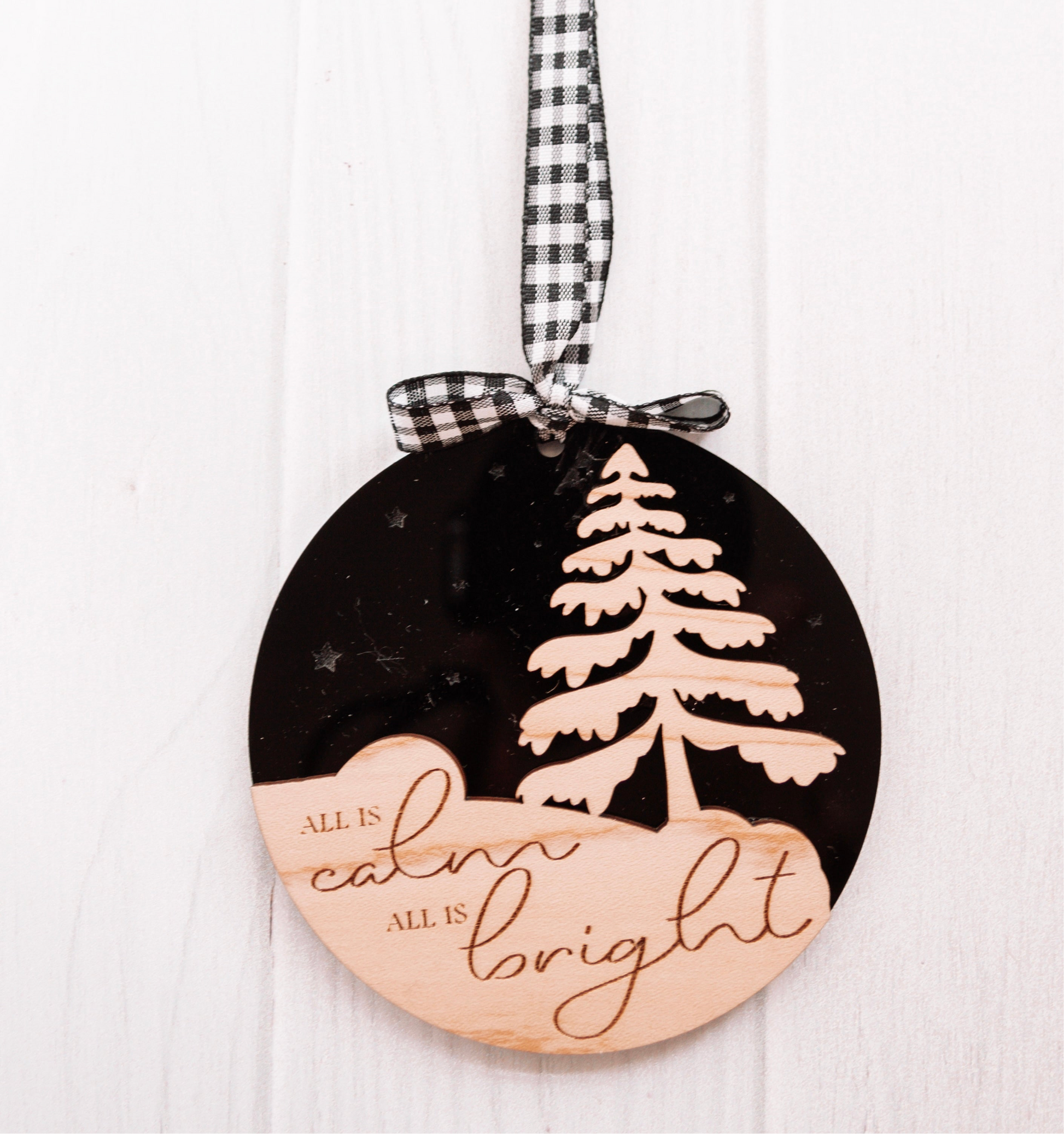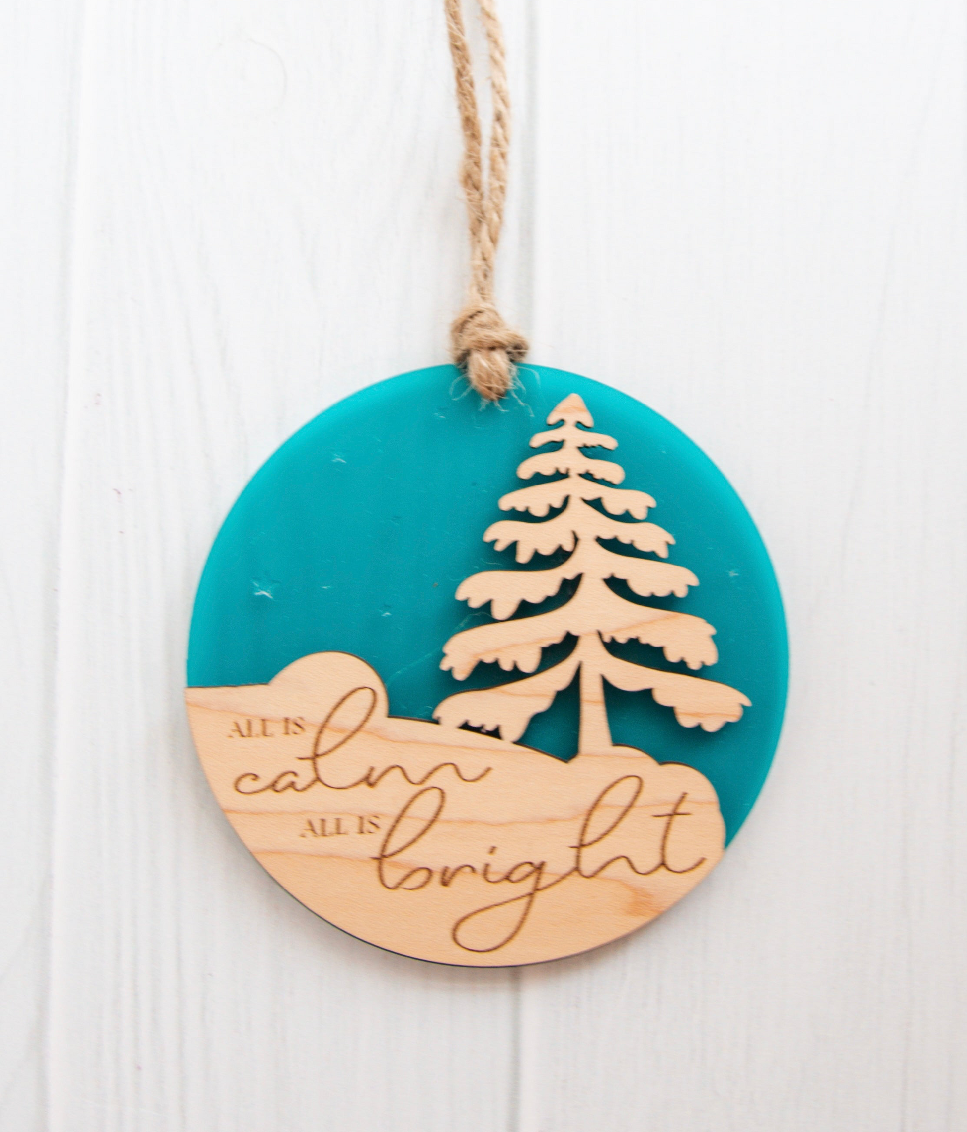 “All is Calm, All is Bright” Acrylic and Maple Wood Ornament