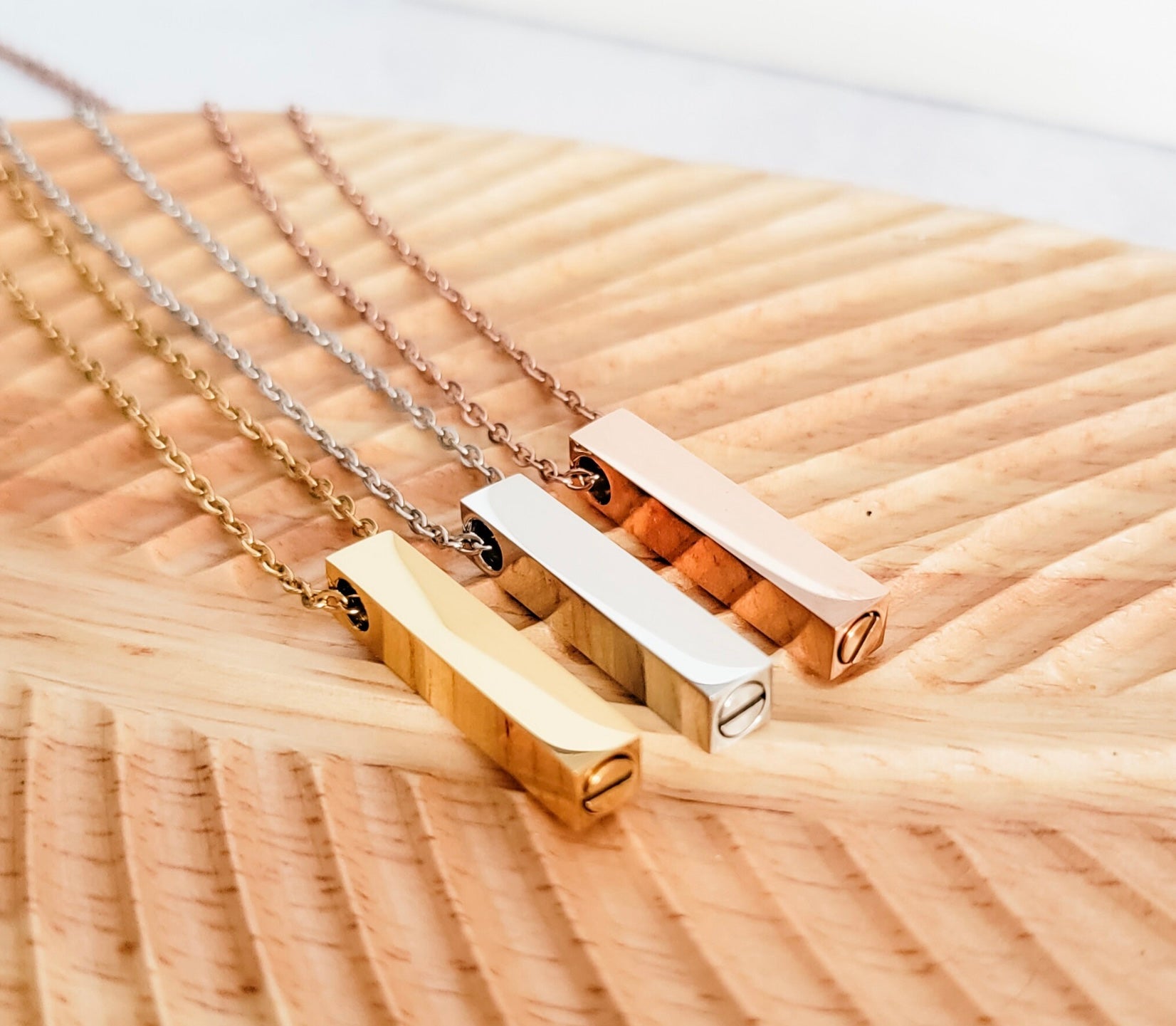 Carry a part of your loved one close to your heart wherever you go with this urn memorial necklace. All four sides may be engraved offering a plethora of options. Price includes single side engraving.